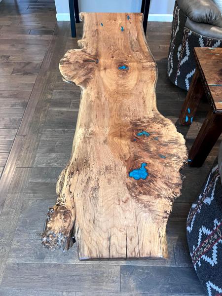 juniper and black walnut slabs along with a brass plaque to make