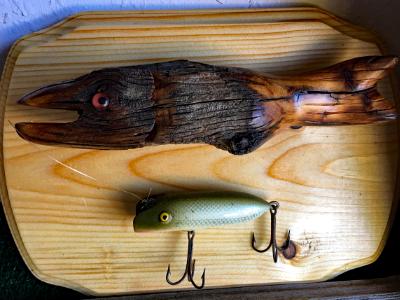 | Click an image to enlarge  Individually carved from Juniper branches, Bill's fish are perfectly paired with